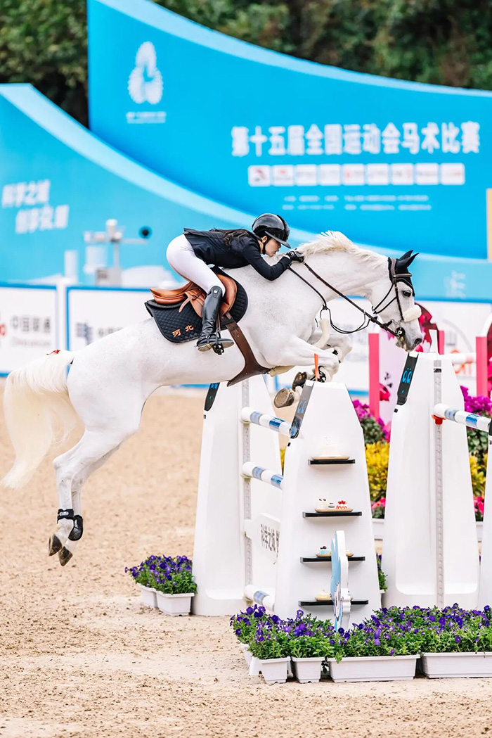 中国骑手王韫婧在2025全运会马术场地障碍个人决赛中获得亚军