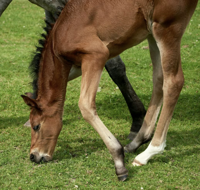 荷兰一项针对温血小马的研究发现,6个月大的小马中,一半已经表现出固定的吃草站姿偏好。其中40%习惯右前肢在前,50%习惯左前肢在前。