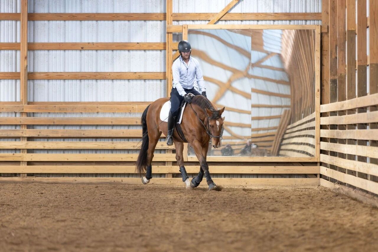 如果你进行调教索打圈练习,务必确保左右两个方向的训练时间基本相同,以避免马在一侧过度发展。你也可以考虑引入长缰调教,以减少反复转弯所带来的不对称压力。