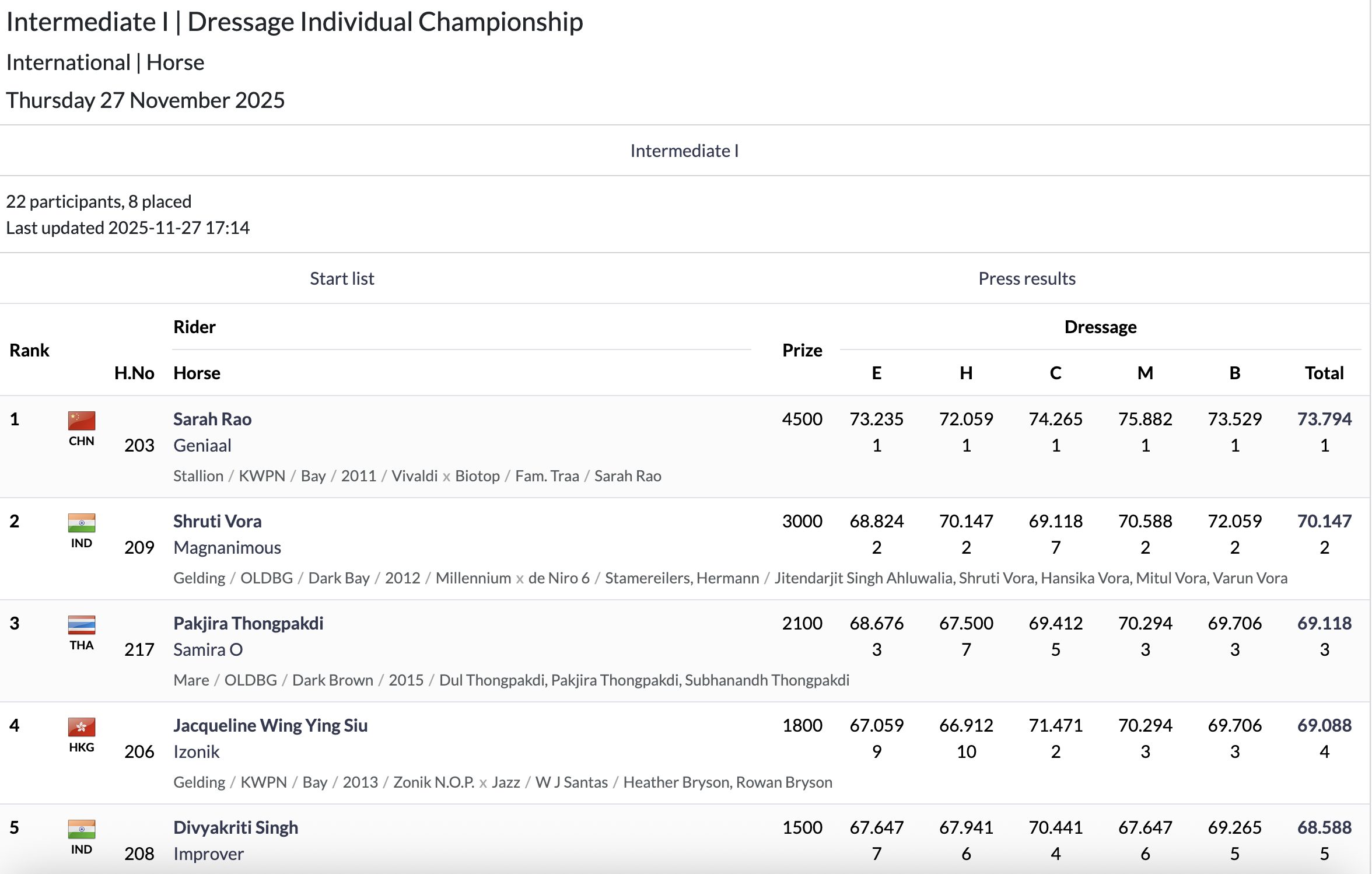 2025年11月27日下午,国际马联亚锦赛盛装舞步第一中级个人赛(Intermediate I | Dressage Individual Championship)在泰国芭提雅圆满落幕。