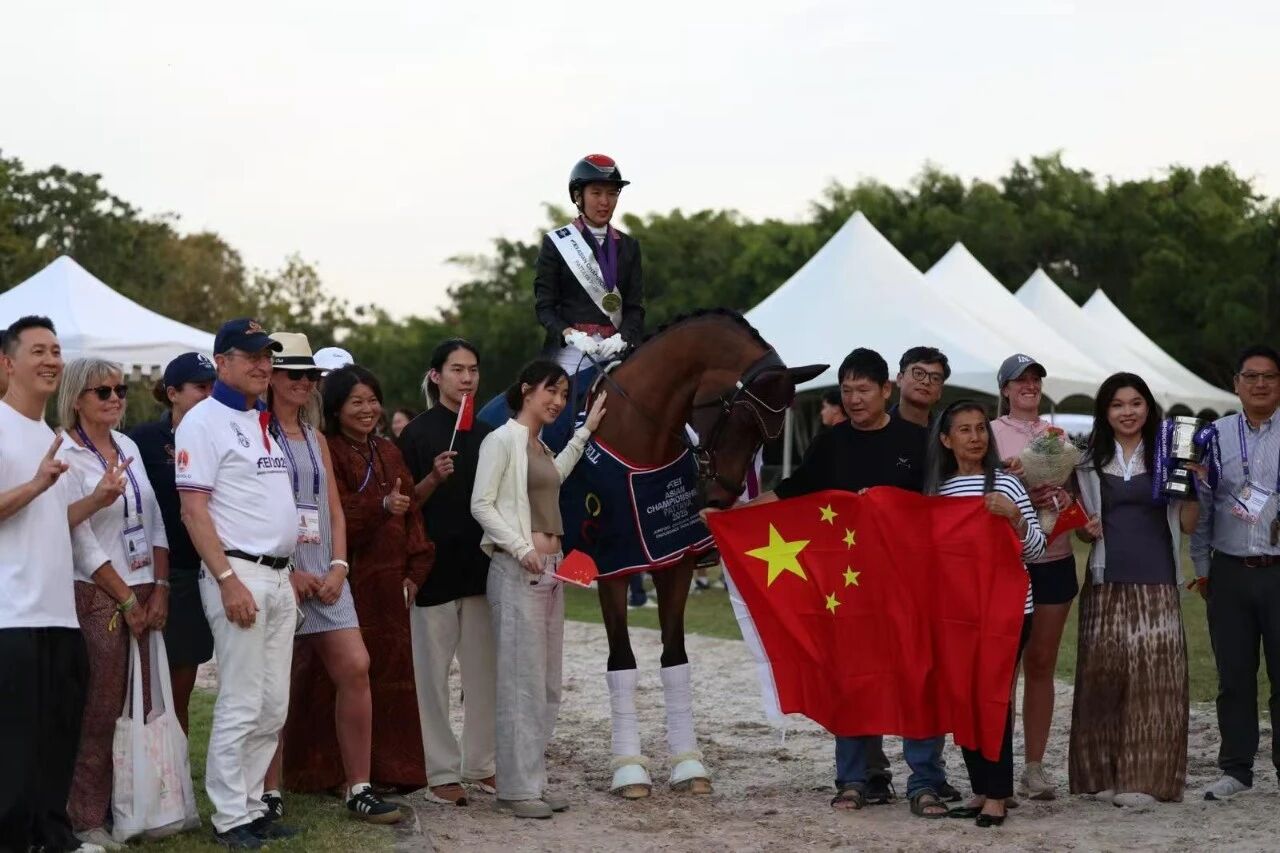 这位与马术结缘二十余载的骑手,10岁初涉马房,15岁便远赴英国接受专业系统训练,凭借过人天赋与不懈努力,早已在国际赛场崭露头角。不仅在法国勒芒站等多项国际赛事中登顶,更曾助力中国队斩获杭州亚运会盛装舞步团体银牌。此次亚锦赛夺冠,无疑是她职业生涯的又一重要里程碑。